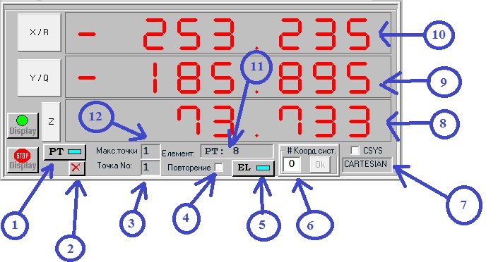 Софтуера има бърза цифрова индикация по трите оси X,Y,Z в декартова